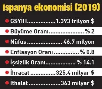 Dünyada hem nüfus yapısı, hem coğrafi özellikleri hem de ekonomik altyapısı Türkiye’ye en çok benzeyen ülkelerden biri de İspanya. Turizm, teksti ve otomotiv gibi birçok alanda benzerlikler var. Gayri Safi Yurtiçi Hasıla’ya göre dünyanın 14’üncü Avrupa Birliği’nin ise beşinci büyük ekonomisi olan İspanya ile ilişkiler her zaman iyi oldu. İspanya, Türkiye’nin Avrupa’daki en büyük ticaret partnerlerinden biri. Ayrıca yatırımda da İspanya yine Türkiye ekonomisinde en büyük oyunculardan. 2019 yılında İspanya’yla Türkiye ikili ticaret hacmi önceki yıla göre yüzde 9.92 oranında azalarak 11 milyar 891 milyon dolar olarak gerçekleşti.