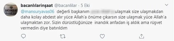M.B yapı araçlarının belediyenin garajında olduğunu, ceza yazmak için bahane ürettiklerini söyledi. Sorunu çözmesi için M.B eski genel müdüre gitti. Genel müdür yardımcı olmadı. Başkan Mansur Yavaş’tan randevu istedi ancak randevu verilmedi. M.B olayı mahkemeye taşımak istiyor harç parası yok. İşçilere maaş ödeyemeyen M.B bankadan kredi çekip işçilerin maaşlarını öyle ödedi. Cezayı ise evini satıp ödeyecek. Twitter’dan sesini duyurmaya çalışan M.B’ye kimse dönüş yapmadı.
