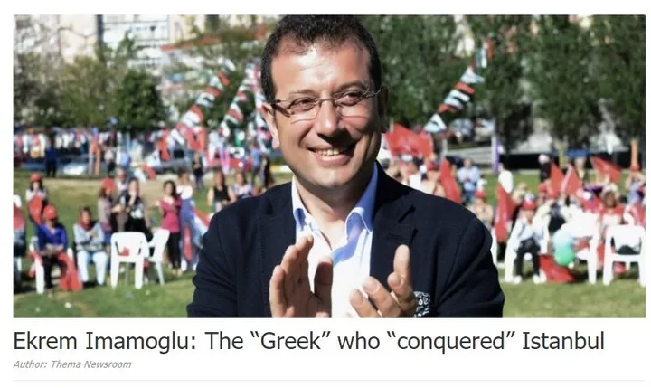 İstanbul’da resmi sonuçlar açıklanmadan kendisini belediye başkanı ilan eden Ekrem İmamoğlu’na Guardian gazetesi ve BBC televizyonundan ardından Yunan Protothema gazetesi de destek verdi.Yunan Protothema gazetesi CHP’nin İstanbul Büyükşehir Belediye Başkan adayı Ekrem İmamoğlu’nu “İstanbul’u fetheden Yunan” sözleriyle manşete taşıdı.